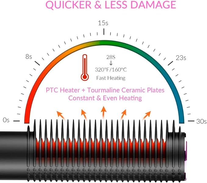 Meet the Hair Curler Brush! This electric straightening brush heats up in just 30 seconds and offers 200% more contact area for faster, healthier results. With 5 heat settings and a 360° rotating power cord, it's perfect for all hair types. Plus, it's portable and comes with a travel bag and accessories.