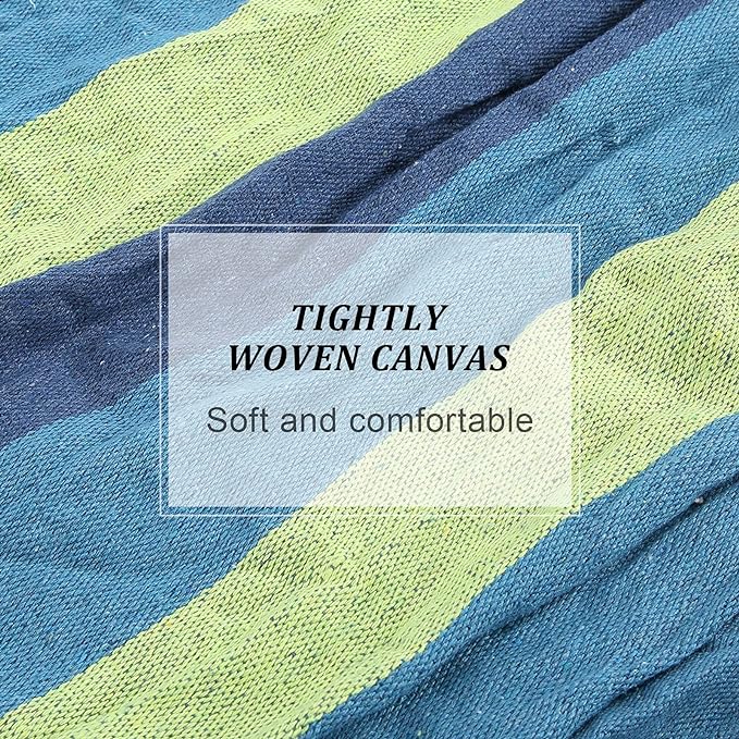 - Made of tightly woven canvas, it provides a soft and comfortable feeling. The bent hammock stick can prevent rollover, making it more comfortable to use.